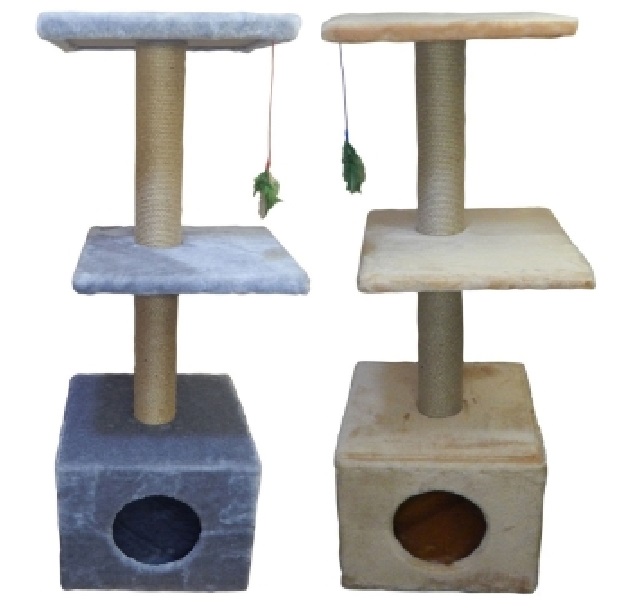 Джерри Домик-когтеточка 2 площадки, высота 105см, домик 37см*37см, высота когтеточки по 35см, цвет серый/бежевый (25)