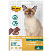 Мнямс 60г Здоровая кожа и шерсть Лакомство хрустящие подушечки для кошек с птицей и говядиной