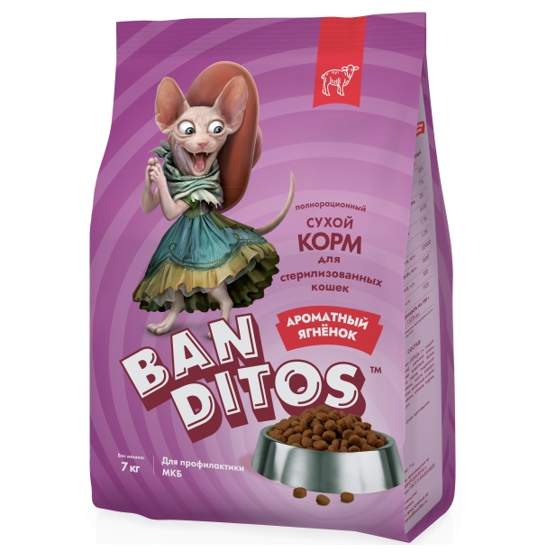 РАЗВЕС Banditos Сухой корм для стерилизованных кошек и кастрированных котов Ягненок