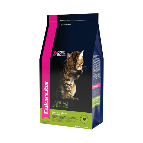 Eukanuba Cat 2кг Hairball Control Сухой корм для взрослых домашних кошек, для выведения шерсти
