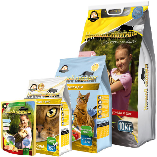Вес упаковки: 400 Бренд: Ночной охотник Страна производитель: Россия Возраст: Старше 12 месяцев Назначение: Повседневный Особенность: Для взрослых кошек Ингридиенты: Курица, Рис - Отзывы