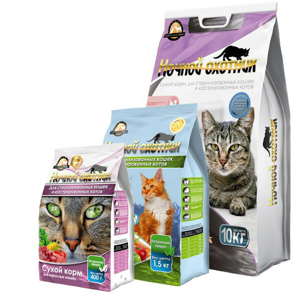 Ночной охотник Сухой корм для взрослых стерилизованых кошек и кастрированных котов