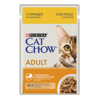 Cat Chow 85г пауч Adult Влажный корм для взрослых кошек Курица и кабачки в желе