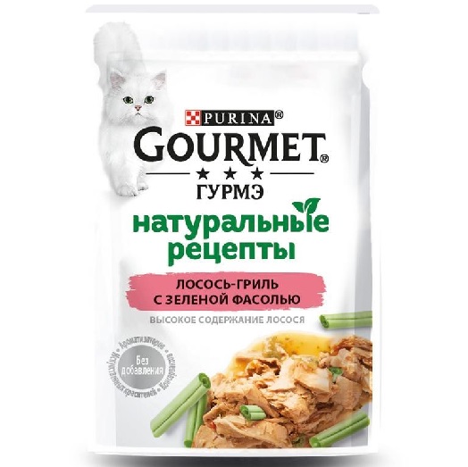 Gourmet 75г пауч Натуральные Рецепты Влажный корм для кошек Лосось-гриль с зеленой фасолью
