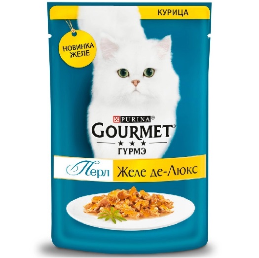 Gourmet 75г пауч Перл Желе Де-Люкс Влажный корм для взрослых кошек Курица (желе)