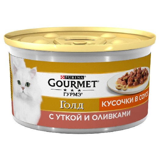 Gourmet 85г конс. Голд Кусочки в соусе Влажный корм для взрослых кошек Утка и оливки