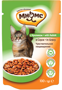 Мнямс 100г пауч Идеальный баланс Влажный корм для взрослых кошек с чув пищеварением Кролик в соусе