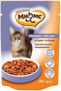 Мнямс 100г пауч Идеальный баланс Влажный корм для взрослых кошек с чув пищеварением Ягненок в соусе