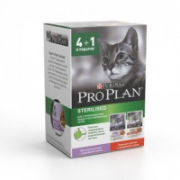Pro Plan 4+1*85г пауч Sterilised Влажный корм для стерилиз&кошек Индейка (желе) + Говядина (соус)