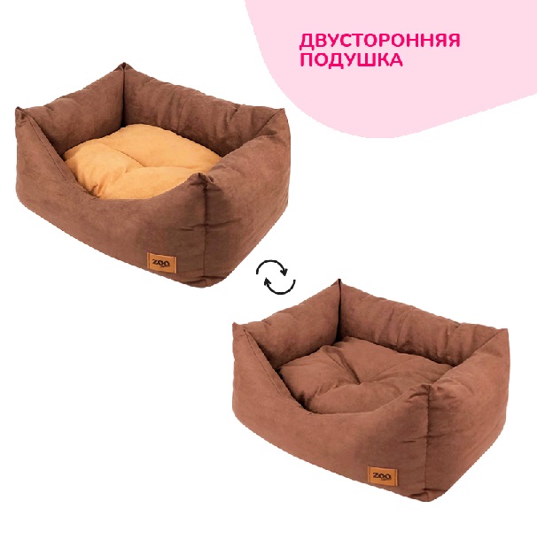 ZooExpress Лежанка пухлик Classic искусственная замша №2 коричневая, 49*36*22см