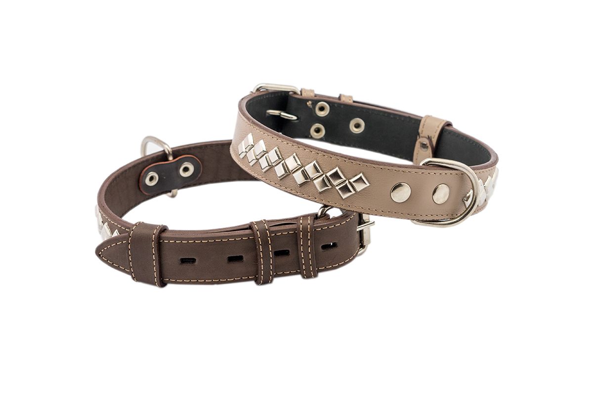 Ошейник "Бюргер" украшенный 2-х слойный 35мм 53-65см бежевый