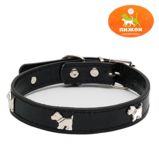 Пижон Ошейник с декором Собачка, искуственная кожа черный, 2*46см