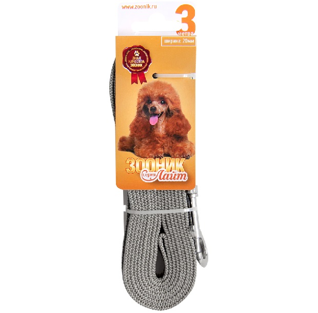 Зооник Лайт поводок капроновый с латексной нитью, серый (3 м*20 мм.)