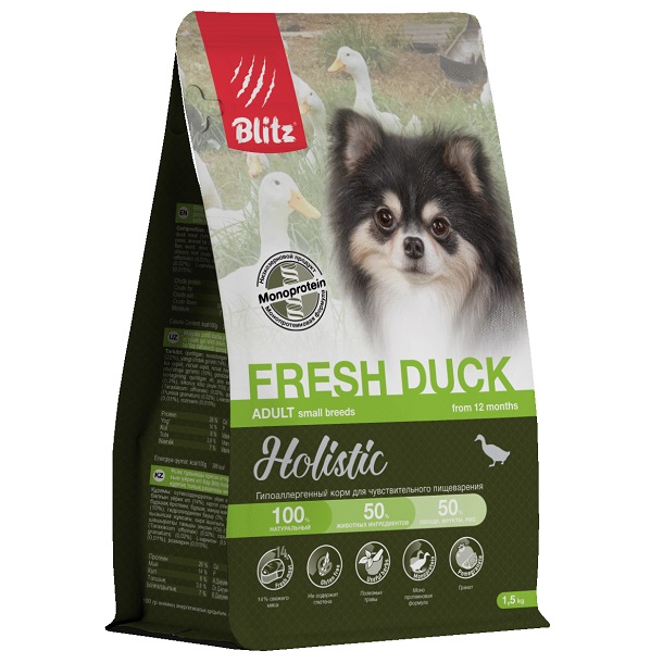 Blitz Holistic Adult Small Breeds Fresh Duck Сухой корм для взрослых собак мелких пород, Свежая утка