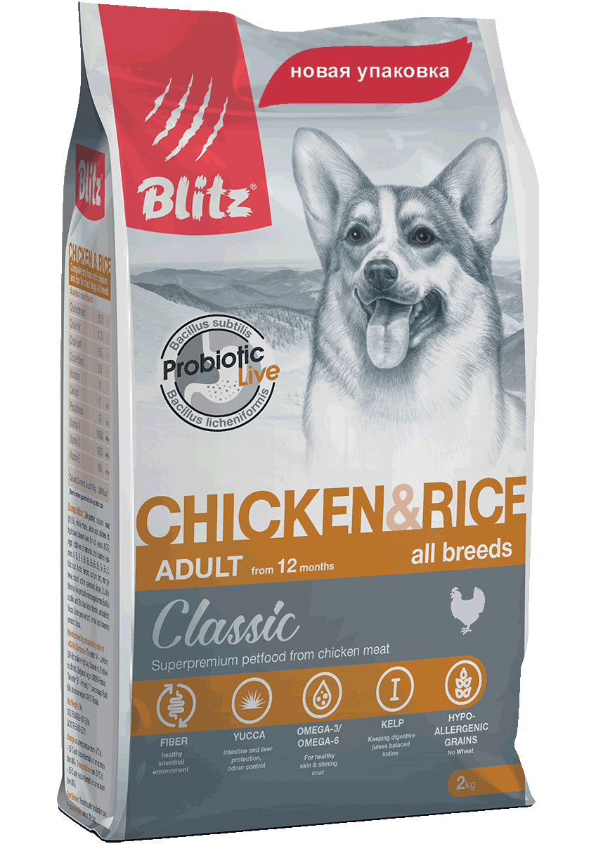 Набор Blitz Adult Classic Chicken&Rice Сухой корм для взрослых собак, Курица и рис