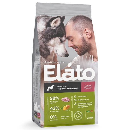 Elato Holistic 2кг Сухой корм для взрослых собак средних и крупных пород с ягненком и олениной