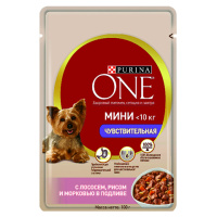 One Mini 100г пауч Влажный корм для взрослых собак мелких пород Лосось, рис и морковь