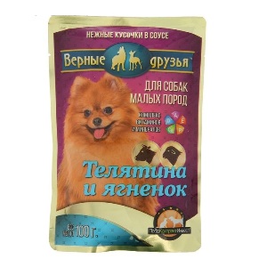 Верные друзья 100г пауч Влажный корм для взрослых собак малых пород Телятина и ягненок (соус)