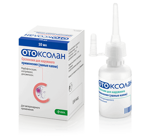 Отоксолан назначают собакам для лечения отита бактериальной и грибковой этиологии, вызванного чувствительными к марбофлоксацину и клотримазолу микроорганизмами и грибами.